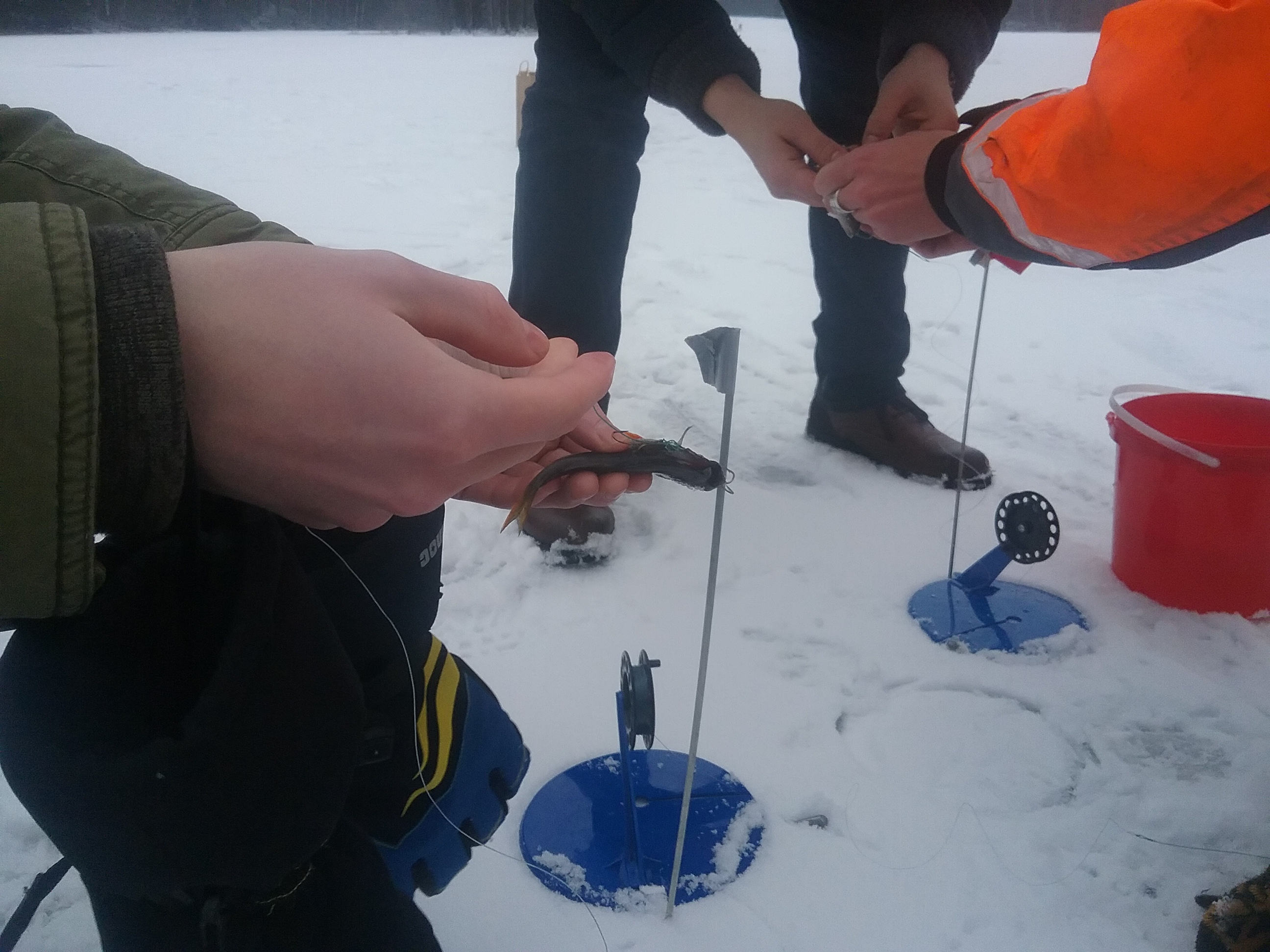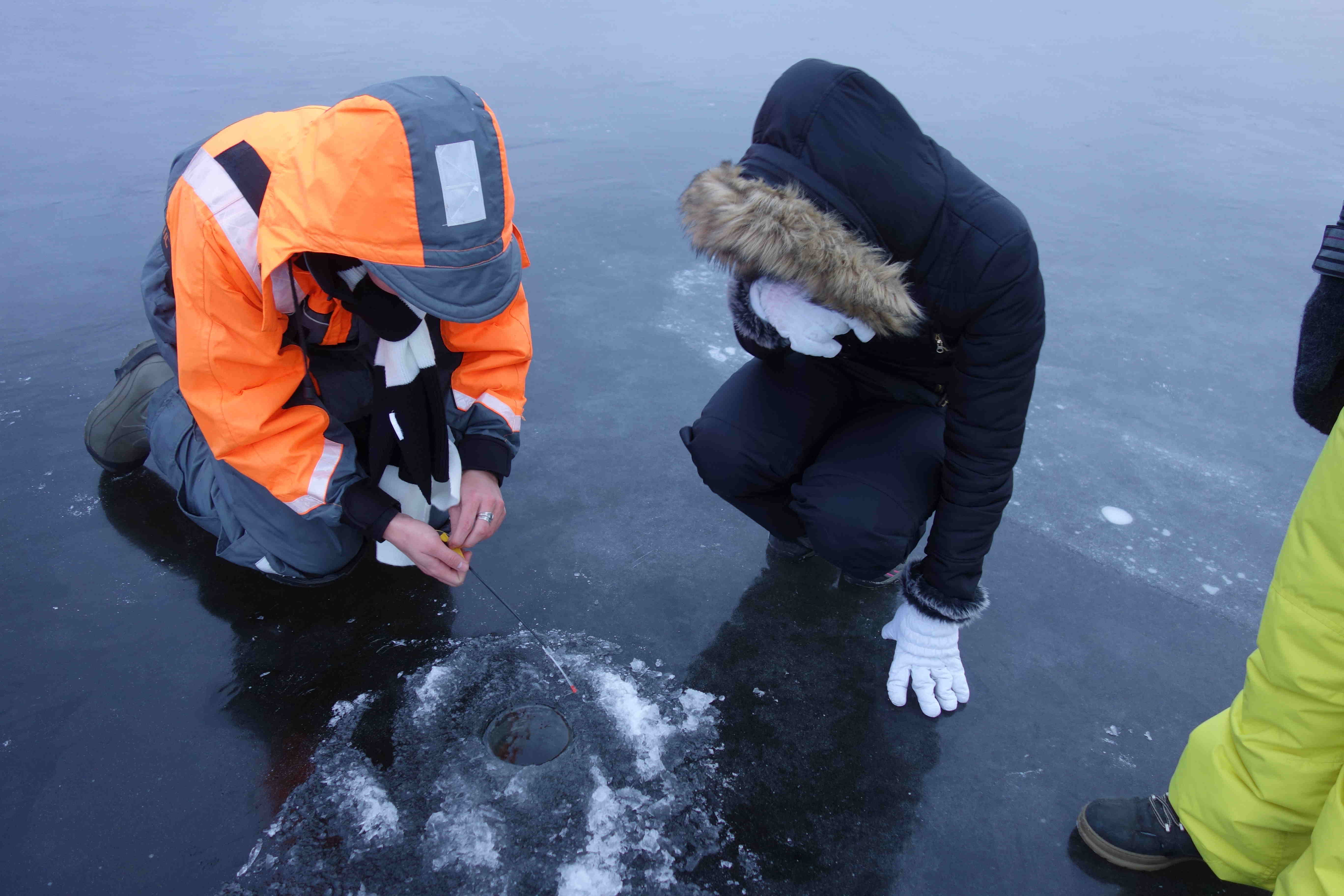 - Learn how to drill ice-holes and bait fish-hooks.