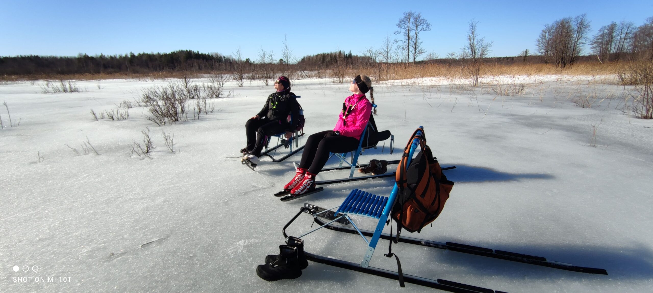 The kick sled has been a key mode of winter transportation since the 17th century in Sweden, Finland, and Estonia. Today, the traditional sled has been redesigned for comfort and ease, perfect for enjoying the outdoors and winter trails. Our kick sleds are equipped with seats, allowing you to bring children along or enjoy a picnic in nature. Ski-style runners make for smooth travel along snowy paths, ensuring comfort and ease. One thing’s for sure—on a kick sled, you’ll stay warm! Plus, it’s an activity that anyone, regardless of age, can enjoy.